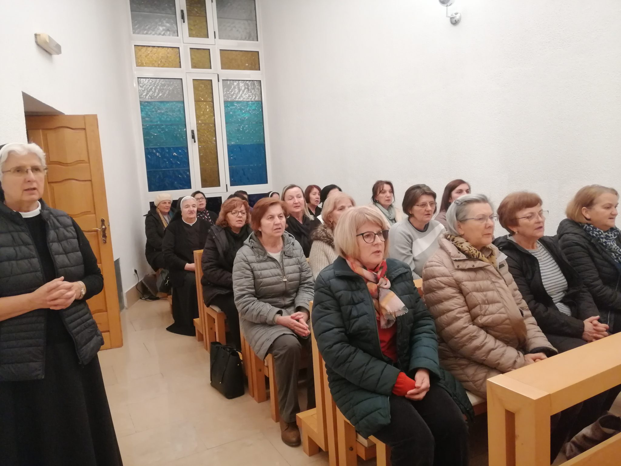 Nakon predavanja uslijedilo je klanjanje Isusu u Presvetom oltarskom sakramentu, koje je animirala s. Iva Klarić. Na početku su sudionici upalili svijeće, po jednu za svakoga, te ih položili pred oltar kao simbol života predanog Bogu i znak molitve za sebe i svoje obitelji. Taj trenutak bio je i poziv na budnost u došašću te simbol duhovnog darivanja i predanosti.
