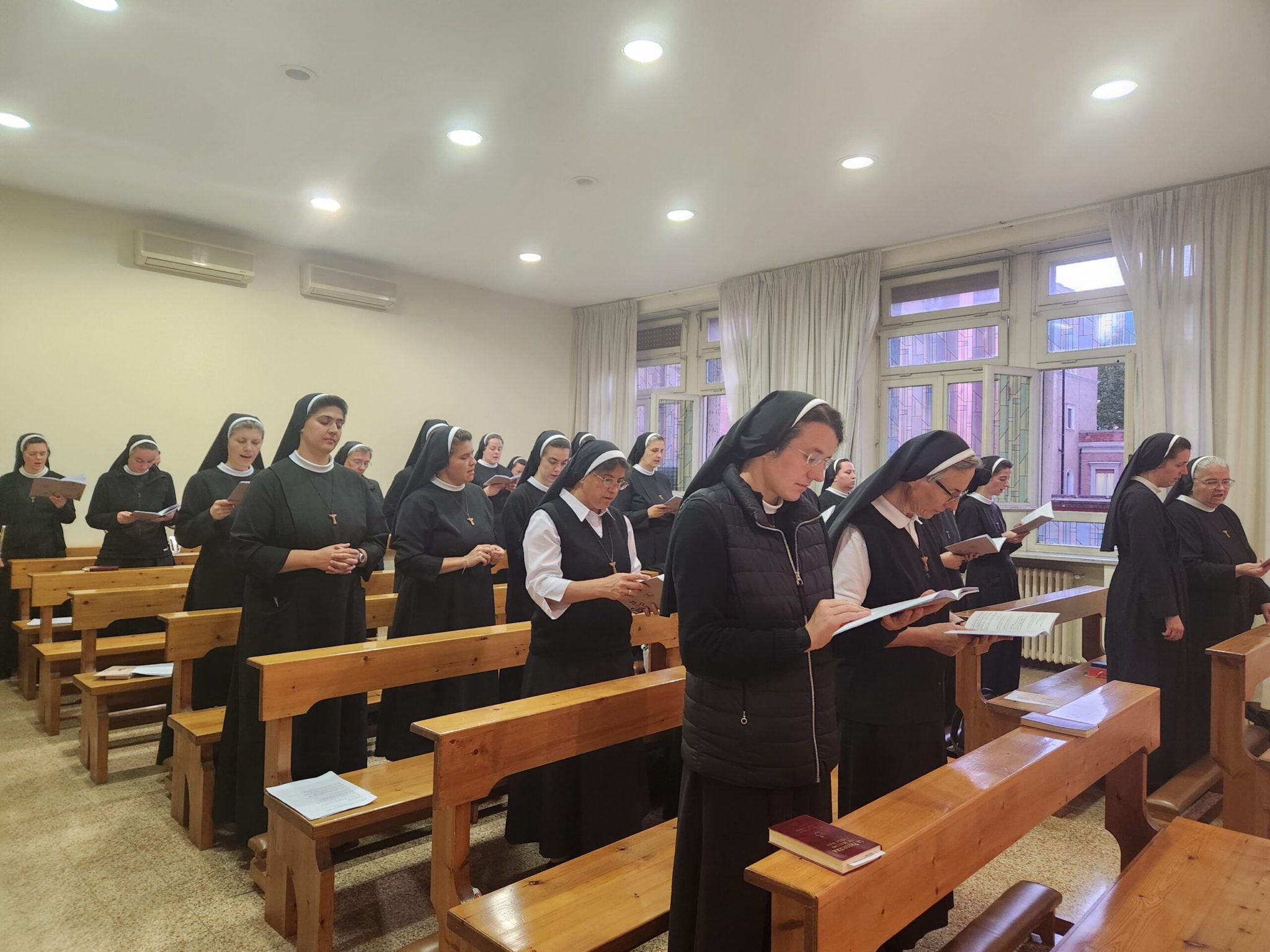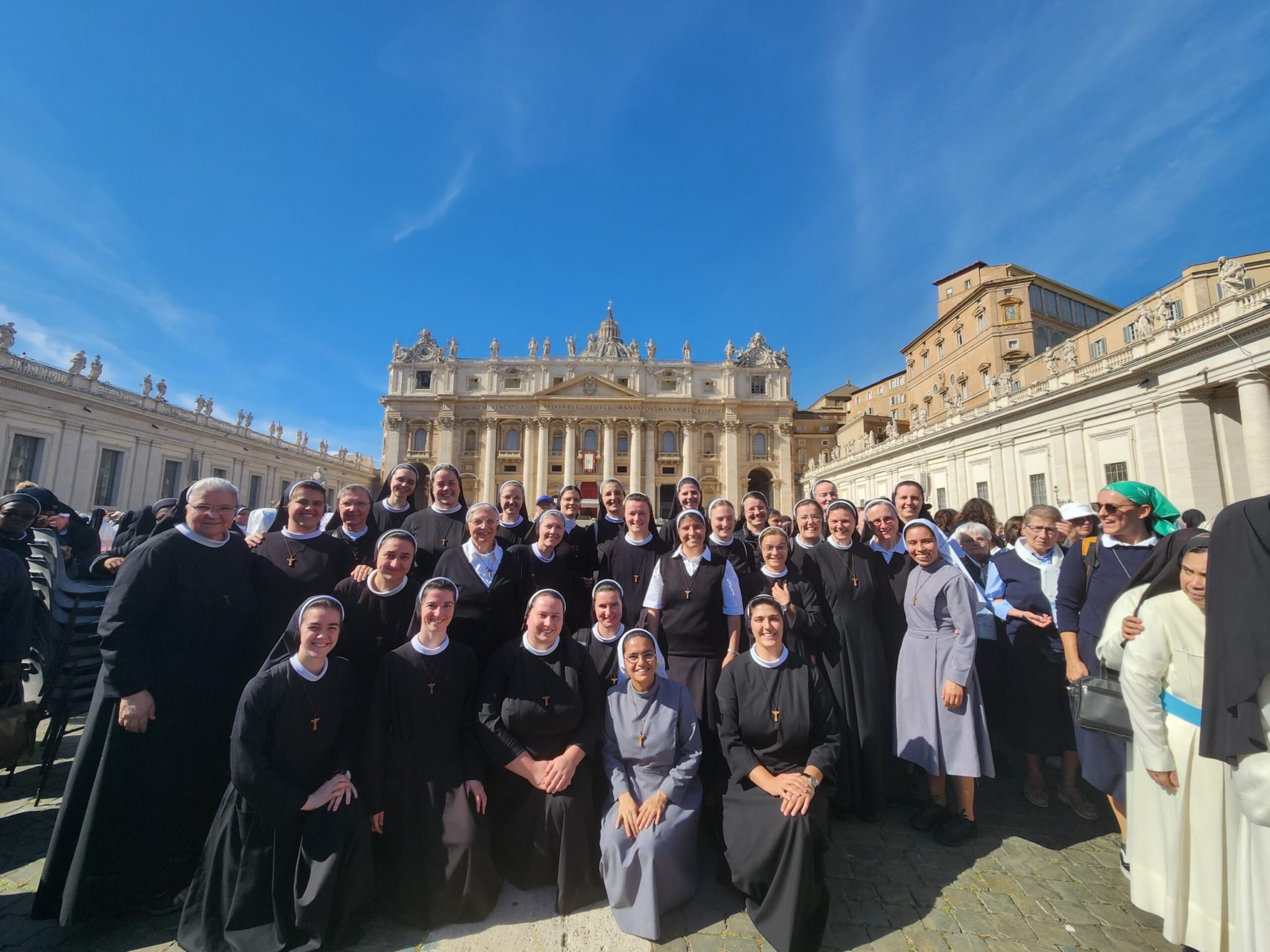 Završnog dana susreta, u subotu 11. listopada, podijelile smo plodove i poticaje ovih dana, izrekle zahvale, a poslijepodne posjetile zajednicu sestara u Farnesini. U večernjim satima sudjelovale smo u molitvi krunice za mir, koju je na Trgu svetog Petra predvodio papa Lav XIV., pred likom Gospe Fatimske. Tijekom kratkog euharistijskog klanjanja, tišina ispunjenog trga govorila je više od tisuću riječi. Bila je to molitva srca cijele Crkve.
