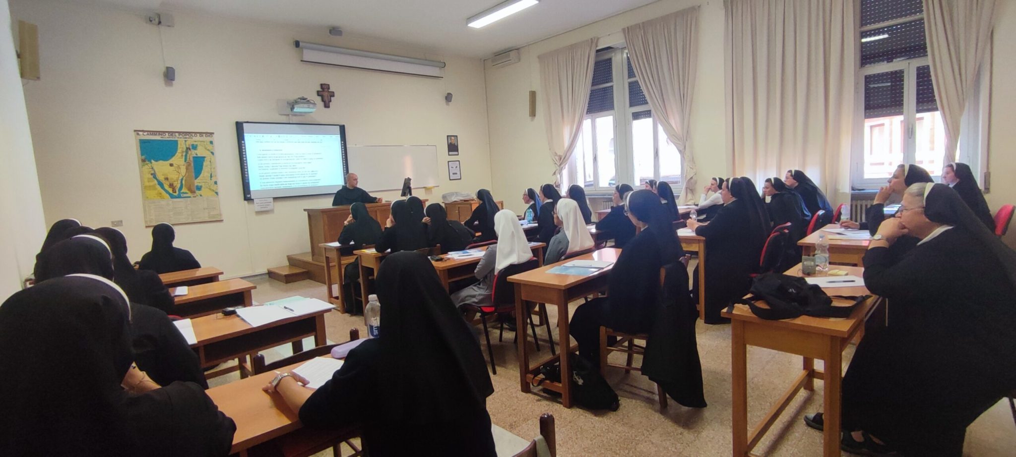 Već sljedećeg jutra, 6. listopada, započeo je duhovno-obrazovni program na Papinskom sveučilištu Antonianum, gdje smo imale priliku osluškivati Riječ na temu evanđeoskog ulomka (Lk 17,1-10), a potom slušati nadahnuto predavanje prof. fra Michelea Sardelle, dekana Fakulteta kanonskog prava, koji je govorio o važnosti zajedništva, izgradnje odnosa i snazi oprosta u redovničkom životu. Program je nastavljen radom u skupinama i međusobnim dijeljenjem iskustava, a dan je zaključen euharistijskim slavljem.