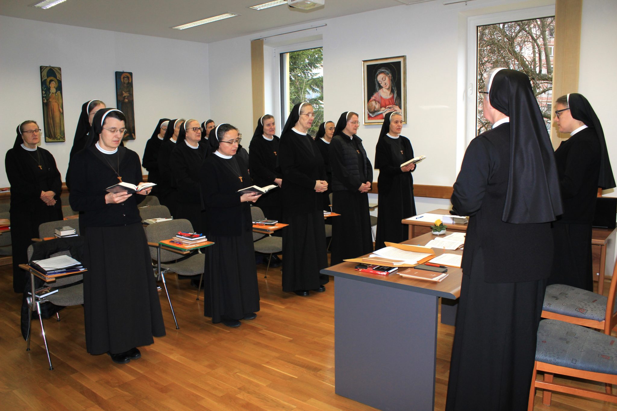 Na završetku uvodnoga dijela s. Željka Dramac poželjela je da Duh Sveti vodi i nadahnjuje rad kapitula te, preporučivši sve zagovoru Blažene Djevice Marije i sv. Franje, proglasila kapitul otvorenim. Potom je s. Radmila Ilinović pročitala pozdrav vrhovne predstojnice s. Veronike Verbič, koja je sestrama poželjela da dani kapitula budu vrijeme osluškivanja Božjega glasa, međusobnog slušanja i plodonosnog razgovora u sestrinskoj ljubavi i poniznosti.